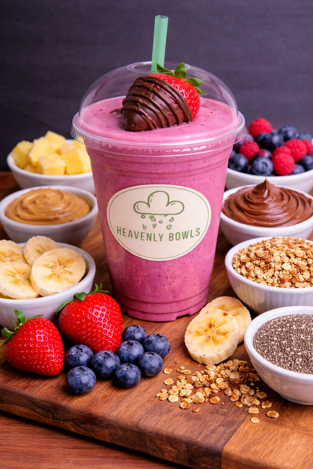 Choose from a variety of organic sorbet bases, fresh fruits, delicious drizzles, and crunchy toppings to build your own smoothie, fully customizable to your taste.